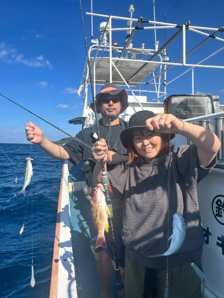 「きたきたー!」と皆さんが歓声を上げ、初心者でも楽しめる雰囲気が色濃く漂う中、ミーバイやグルクンが次々に釣り上げられました。