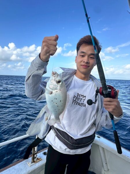 今日はちょっぴり雲が多めの一日で、「今日の魚たちはどうかな〜?」と期待しながら出港しました。