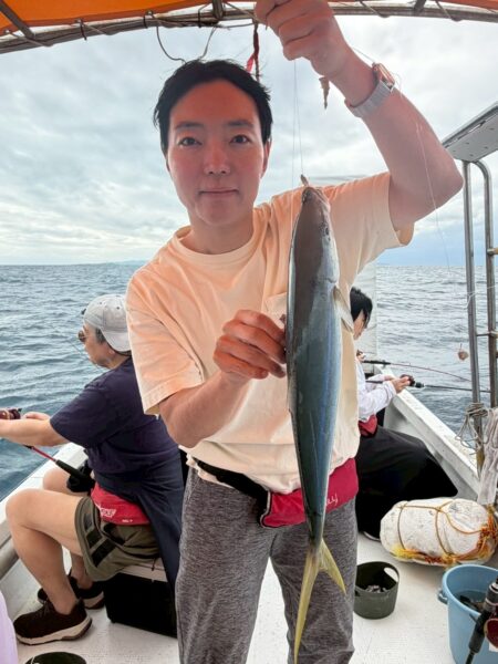 アタリがきて「きたきたー!」という声が船上に響き渡り、みんなの笑顔が広がりました。