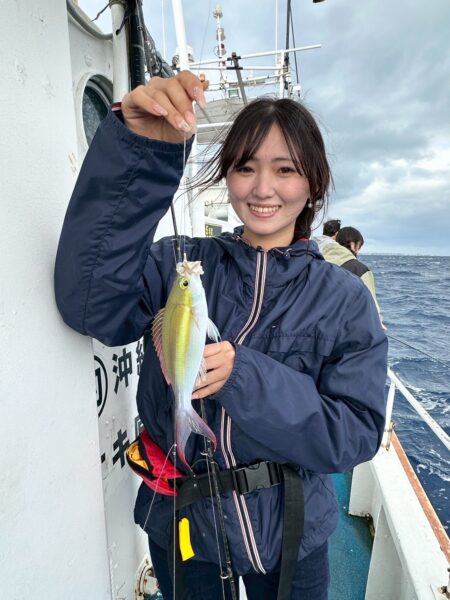 「これが私の初めての釣り!」と言ってはしゃぐ姿に、船全体が明るい雰囲気に包まれました。