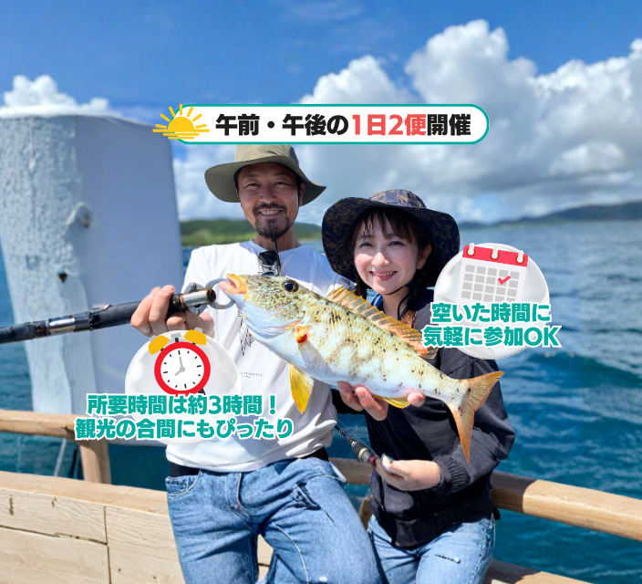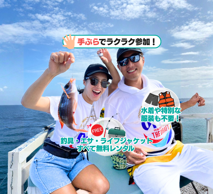 さらに、釣れたグルクンをエサにして「泳がせ釣り」で大物狙いに切り替えることも可能!運が良ければアカジン(ハタの仲間)など高級魚が釣れることも♪シンプルで気軽に楽しめる釣り体験。ぜひ一度挑戦してみてください!