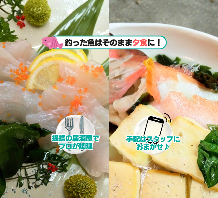 釣った魚は居酒屋で調理可能