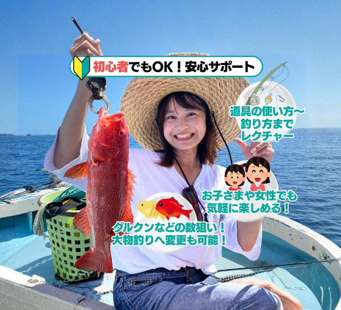 - ・1名様での出港となる場合は(他のご予約者様がいない等)、+10,000円の料金でのご案内となります。